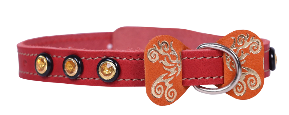 Однослойный ошейник из натуральной кожи с украшением "бабочка" и стразами, прошит декоративной строчкой, полукольцо посередине.