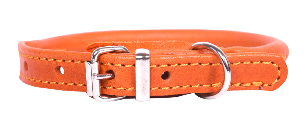 Однослойный ошейник из натуральной кожи круглого сечения, шов наружу, полукольцо у пряжки.