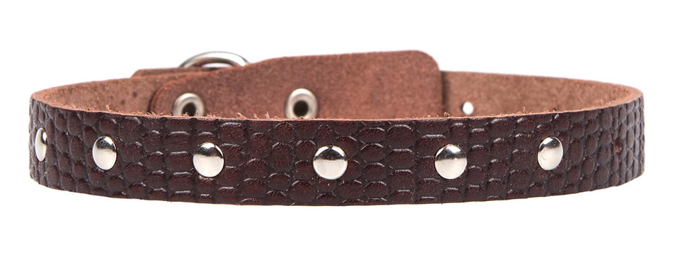 Однослойный ошейник из тисненой натуральной кожи, украшенный металлическими заклепками, не прошитый, полукольцо у пряжки.