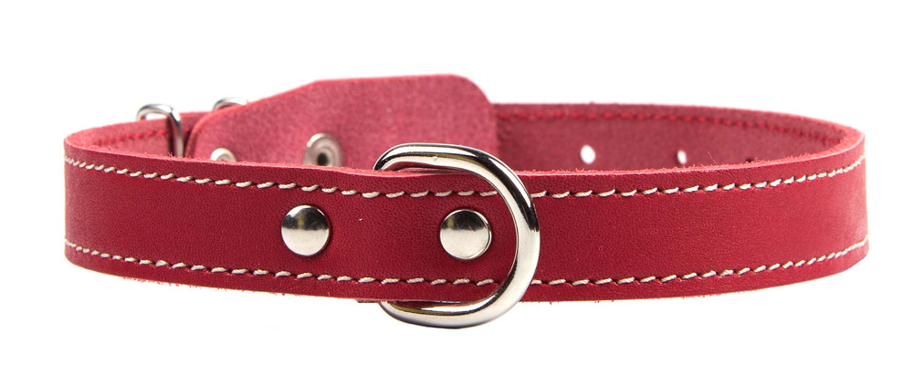 Однослойный ошейник из натуральной кожи, прошит декоративной строчкой, полукольцо посередине.