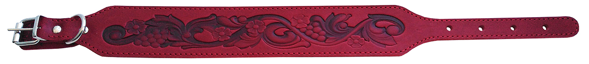 Ошейник-борзятник c тиснением "Виноград", изготовлен из 2-х слоев натуральной кожи, прошит декоративной строчкой, полукольцо у пряжки.