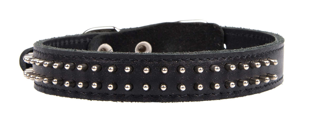 Двухслойный ошейник из натуральной кожи с украшением "еж", проклеен, прошит декоративной строчкой, полукольцо у пряжки.