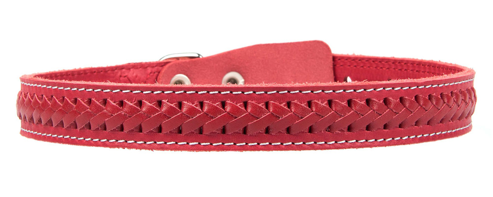 Двухслойный ошейник из натуральной кожи с плетением "Коса", края в обрезку, проклеен, прошит декоративной строчкой, полукольцо у пряжки.