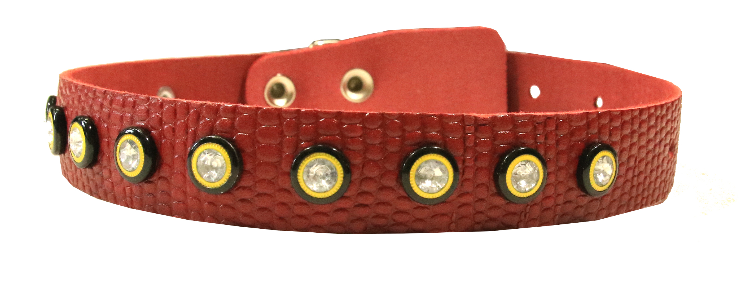 Однослойный ошейник из тисненой натуральной кожи с украшением "стразы", не прошитый. Полукольцо у пряжки.