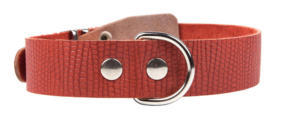 Однослойный ошейник из тисненой натуральной кожи, не прошитый, ширина 35 мм, полукольцо посередине.