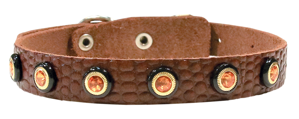 Однослойный ошейник из тисненой натуральной кожи с украшением "стразы", не прошитый. Полукольцо у пряжки.