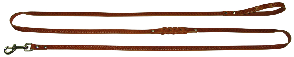 Поводок однослойный длинный шириной 12 мм, с плетением посередине, не прошитый, с фактурным тиснением, из натуральной кожи.