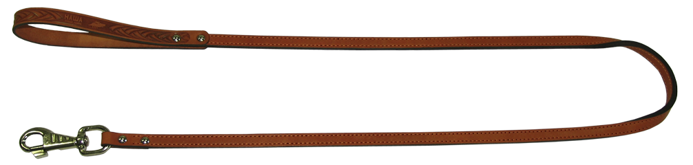 Поводок двухслойный длинный шириной 13 мм с плетением посередине, прошитый, из натуральной кожи.