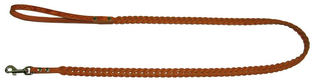 Поводок, плетеный вручную из 3-х полос натуральной кожи шириной по 12 мм. Плетение - квадрат.