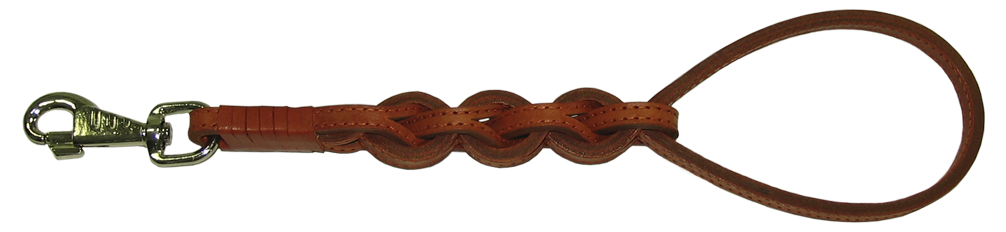 Водилка двухслойная, плетеная из 4-х прошитых полос натуральной кожи, шириной по 10 мм. Плетение кольцами. Амортизатор нейтрализует рывки собаки, усиливая надежность и прочность поводка.