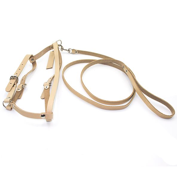 Комплект состоит из поводка шириной 10 мм и оснащен специальным карабином, вращающимся вокруг собственной оси, длиной 1 м 20 см, и шлеи, изготовленный из одинарной полосы натуральной кожи шириной 12 мм снабжена никелированной фурнитурой –пряжкой и полукольцом.