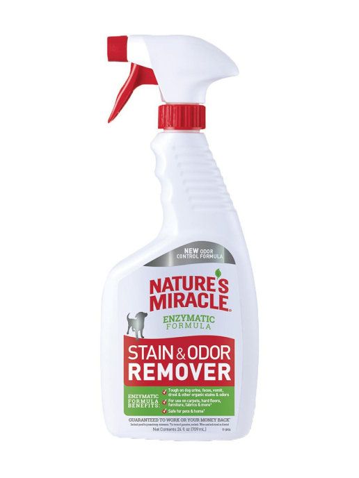 Nature's Miracle Dog Универсальный уничтожитель пятен и запахов для собак, спрей 709 мл. Применяется для чистки ковров, пола, мебели, одежды, клеток, туалетов и т.п. Полностью удаляет все органические запахи и пятна. Эффективно удаляет даже застарелые пятна. Перед использованием: протестируйте поверхность на цветоустойчивость; средство не разводить; всегда применяйте средство первым; перед применением хорошо встряхнуть. Для удаления пятен и устранения запахов: удалить грязь, обильно нанести, подождать 5 мин, вытереть. Не подпускать животных к обработанной области до ее высыхания. Для трудно выводимых пятен используйте жёсткую щётку, оставьте средство на 1 час и вытрите поверхность. Для устранения стойких запахов пропитать все слои ткани и обработать место под коврами. Для использования при стирке: пропитайте загрязнённую область средством, затем постирайте ткань, как обычно. Внимание! При применении в соответствии с инструкцией безопасен для использования вблизи детей и животных.