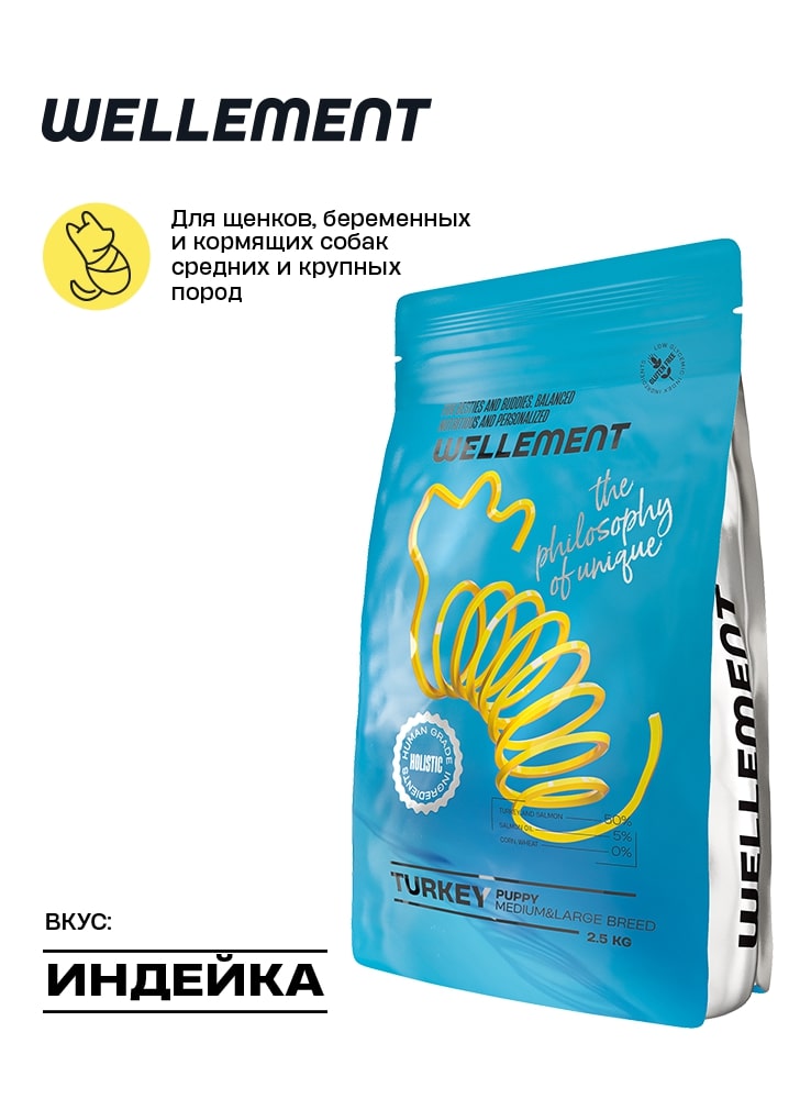 Wellement Корм для щенков средних и крупных пород Индейка 800 г для собак