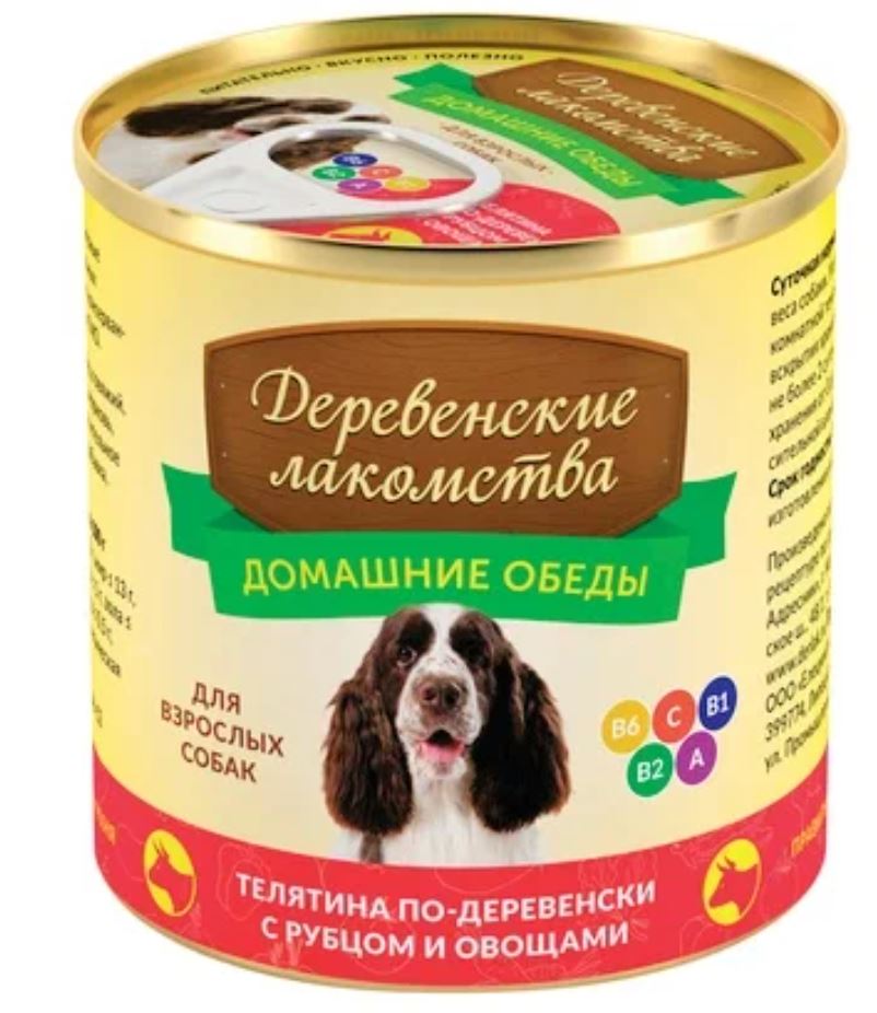 Деревенские лакомства консервы для собак Телятина с рубцом и овощами 240 г