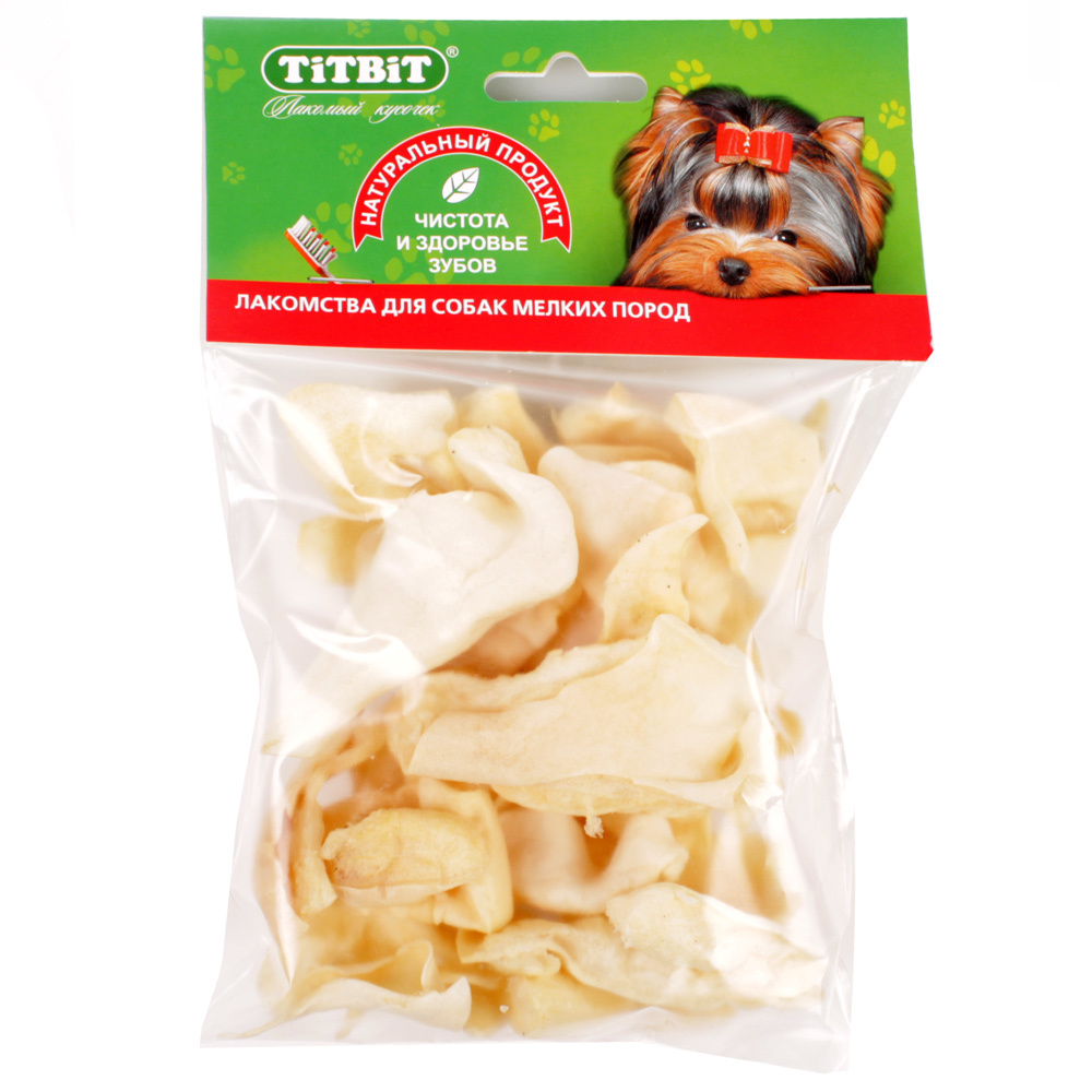 Высушенные кусочки бараньих носогубных складок и щековины. Упаковка содержит 14-16 кусочков лакомства. Высокое содержание коллагеновых и эластиновых волокон обеспечивает поступление в организм незаменимых компонентов для роста и поддержания качества хрящевВысокое содержание коллагена и эластина способствует улучшению формирования ушного хряща (для пород собак, стандартом которых предусмотрен вертикальный постав ушной раковины).