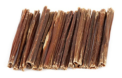 Высушенные говяжьи кишки. Упаковка содержит штук длиной 11 см.
