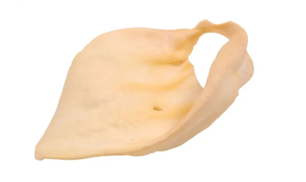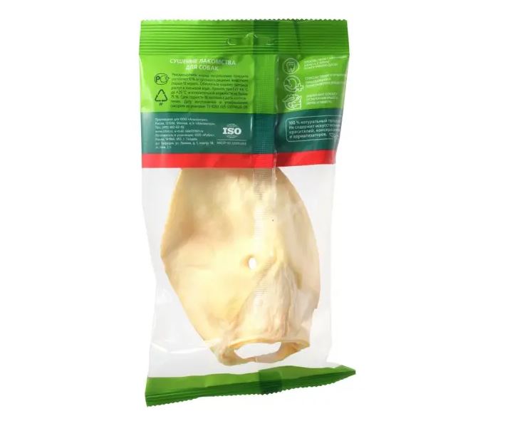 Упаковка содержит одно большое высушенное телячье ухо.