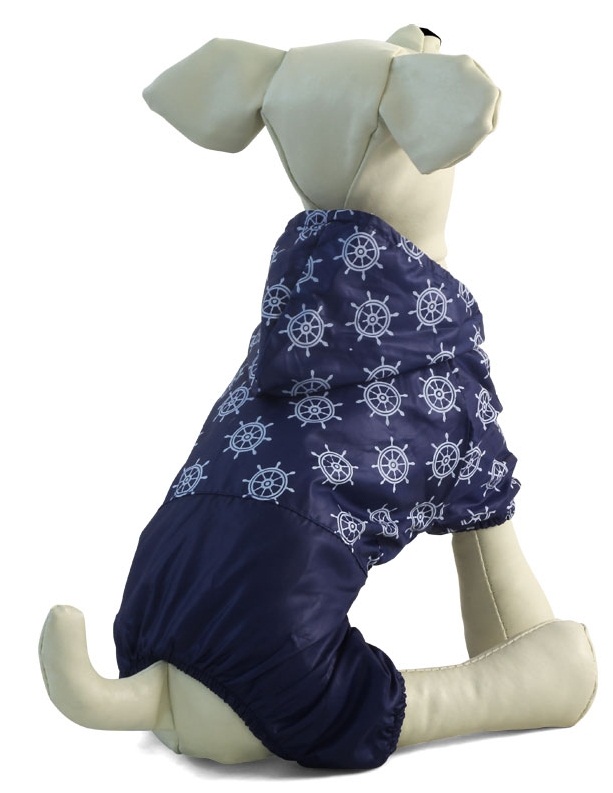 Костюм-дождевик "Штурвал" - это удобный и функциональный аксессуар для собак, который просто незаменим в дождливую погоду. Изделие защитит шерсть животного от дождя и грязи, а непродуваемая ткань - от сильного ветра. Костюм имеет стильный дизайн, а универсальный фасон не стесняет движений питомца во время прогулки. Изделие с модным принтом также имеет капюшон, а на штанинах предусмотрены удобные резинки, препятствующие попаданию грязи и влаги снизу.