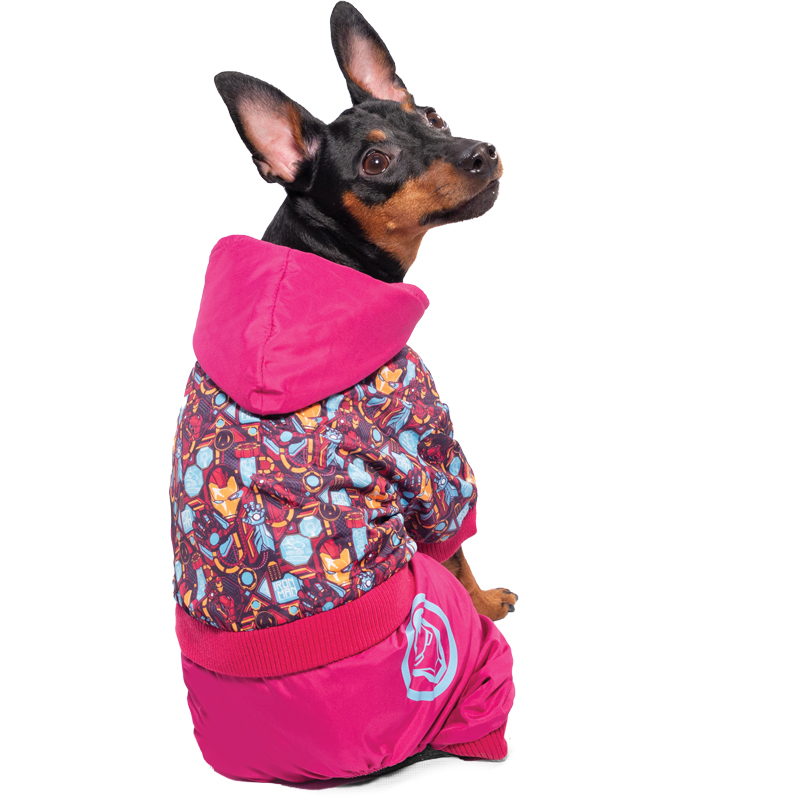 Дождевик в дизайне Железный человек выполнен из дышащего материала, который обеспечивает сухость собаки во время прогулок под дождем.