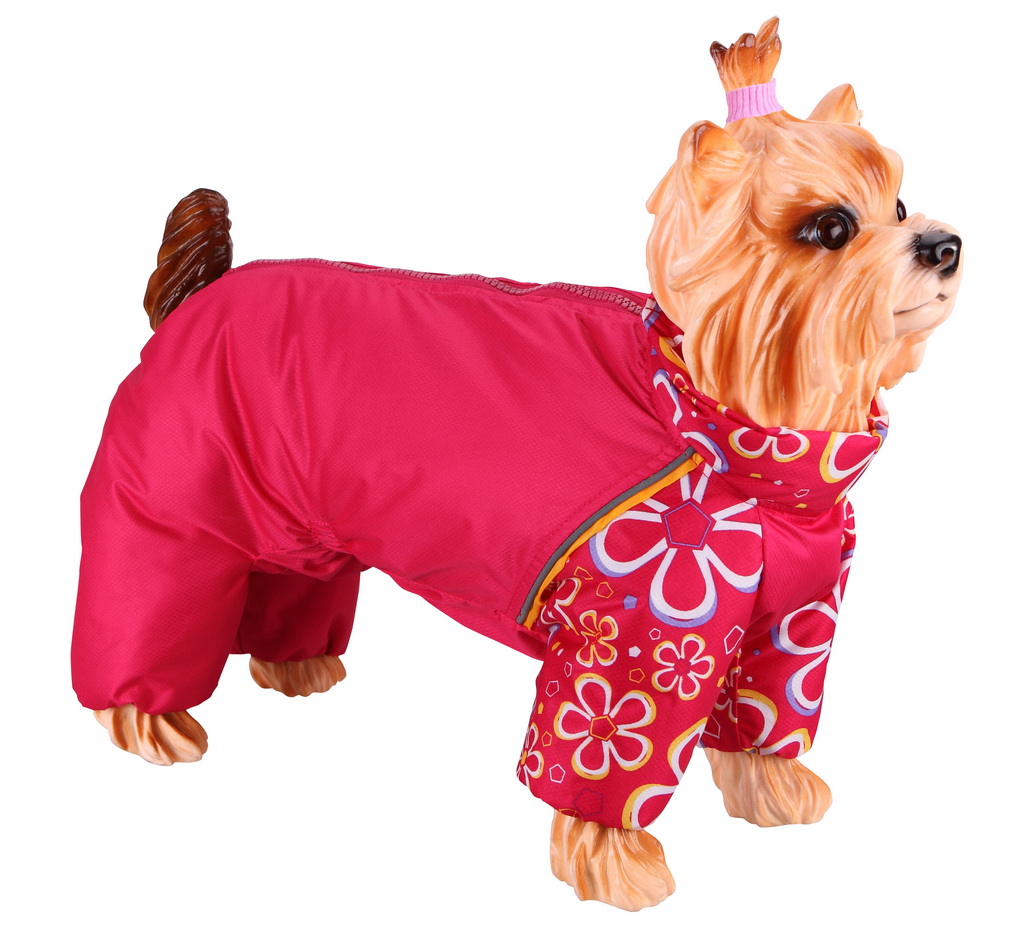 Дождевик "Мопс", красный с цветами, девочка, болонья, флис