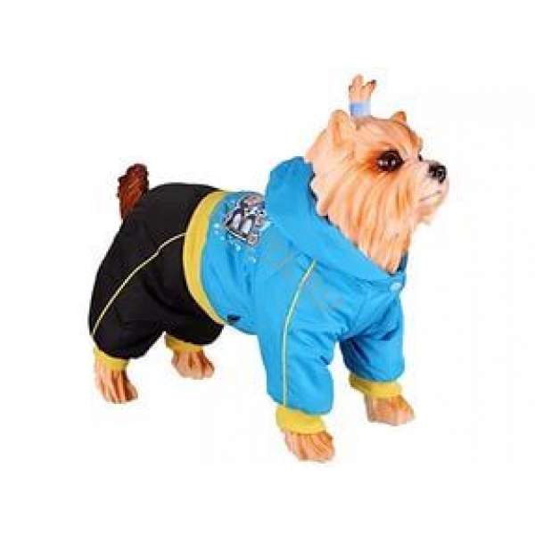 Функциональный, практичный комбинезон с синим верхом, незаменимый при прогулке с собакой в осенне-зимний период.