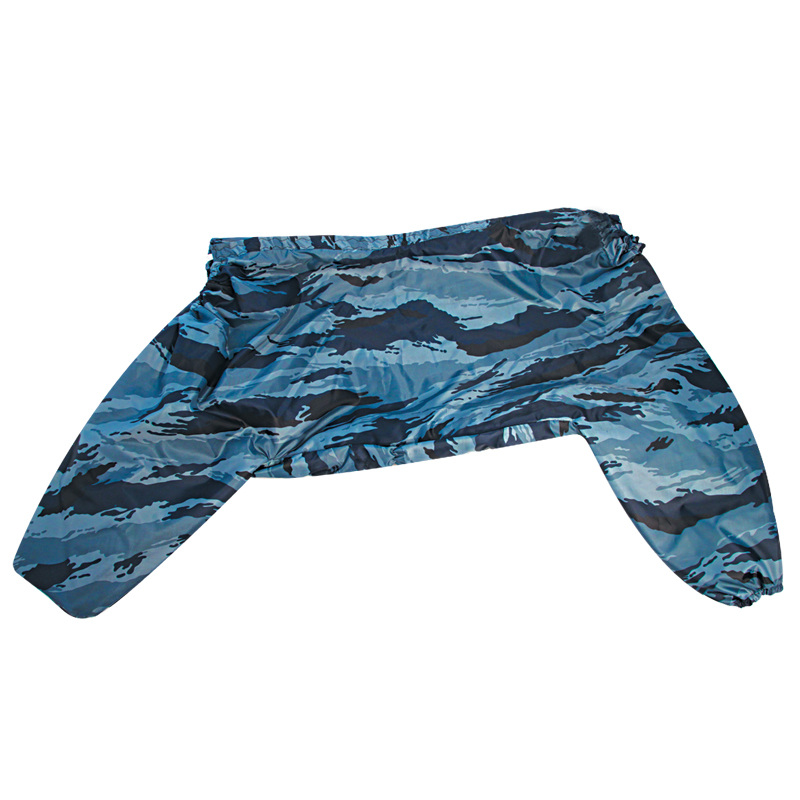 Изделие надежно фиксируется при помощи молнии на спине, для удобства надевания на шее есть пуговица, а на штанинах предусмотрены удобные резинки, препятствующие попаданию грязи и влаги снизу.