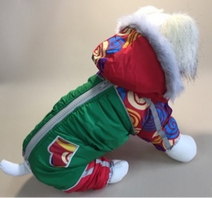 Утепленный болоневый комбинезон на синтепоне, меховой подклад, застежка-молния по спинке.