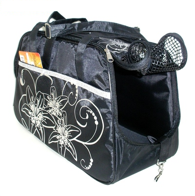 Сумка выполнена из комбинированной ткани и закрывается на застежку-молнию. С одной стороны сумки имеется вырез под голову животного. Для удобной переноски у сумки имеются две ручки из текстиля.