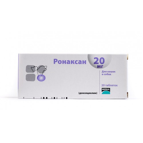 Ронаксан назначают кошкам и собакам с лечебной целью при болезнях органов дыхания (ринит, тонзиллит, бронхопневмония), мочеполовой системы (цистит, пиелонефрит, простатит, эндометрит), кожи (гнойные дерматиты, абсцессы) и других инфекциях, возбудители которых чувствительны к доксициклину.
