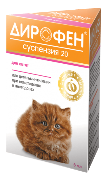 ДИРОФЕН-СУСПЕНЗИЯ - комплексный антигельминтный препарат для котят широкого спектра действия с содержанием тыквенного масла.