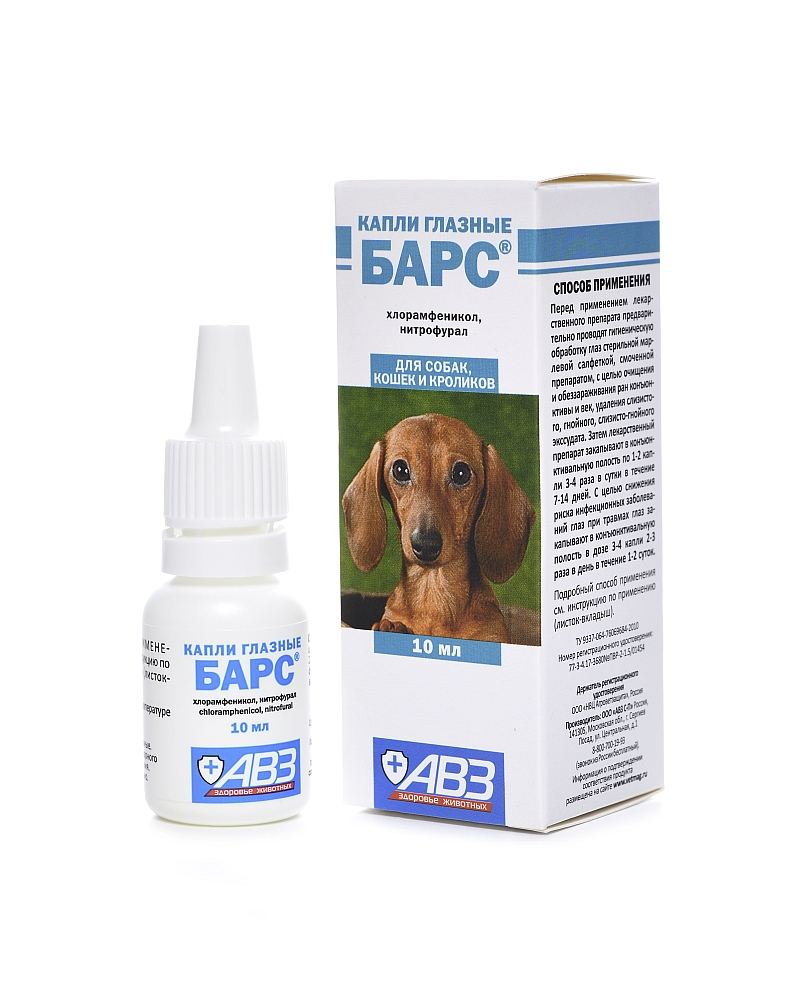Капли глазные БАРС® назначают собакам, кошкам и кроликам декоративных пород