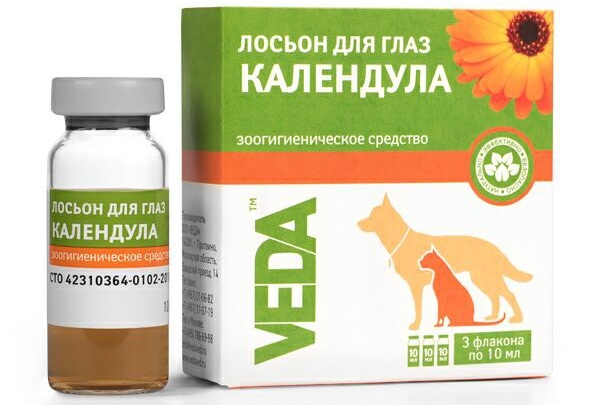 Лосьон «Календула» применяют для гигиенической обработки глаз собак и кошек при их слезоточивости, отечности.
