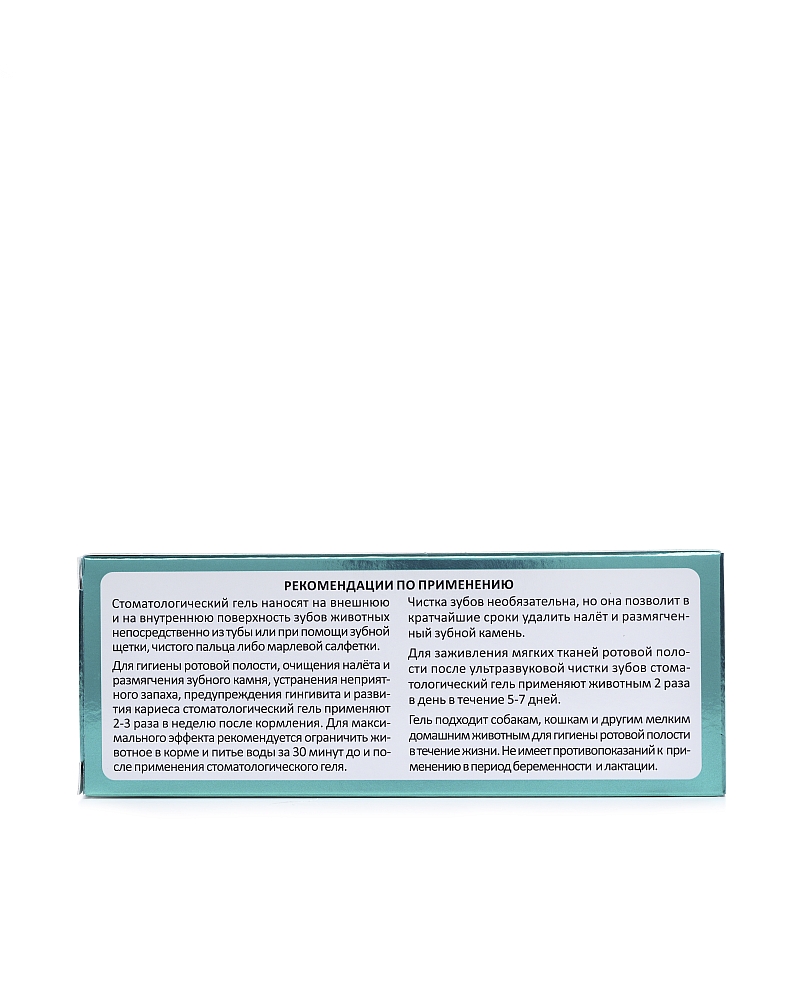 Стоматологический гель наносят на внешнюю и на внутреннюю поверхность зубов животных непосредственно из тубы или при помощи зубной щетки, чистого пальца либо марлевой салфетки.