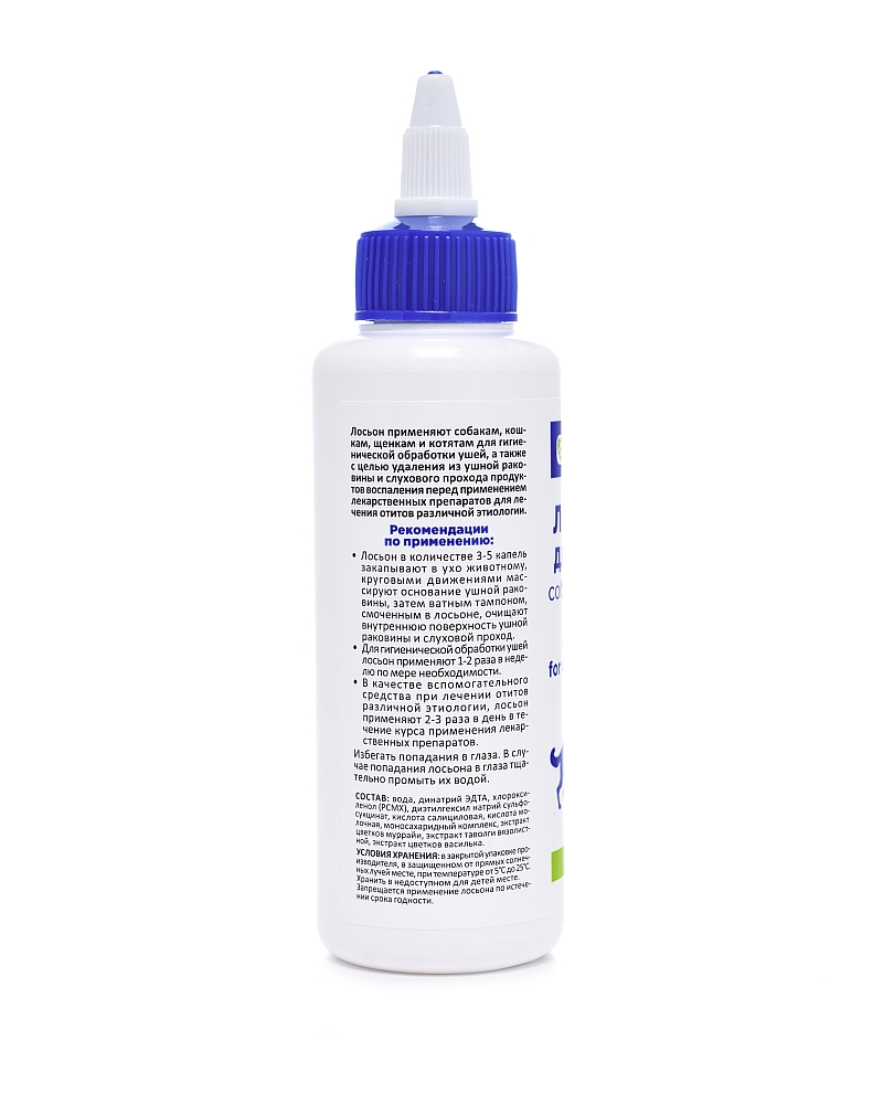Лосьон применяют собакам, кошкам , щенкам и котятам для гигиенической обработки ушей, а также с целью удаления из ушной раковины и слухового прохода продуктов воспаления перед применением лекарственных препаратов для лечения отитов различной этиологии.