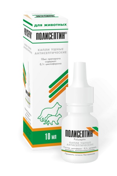 Полисептин применяют для лечения собак и кошек при острых и хронических отитах бактериальной этиологии.