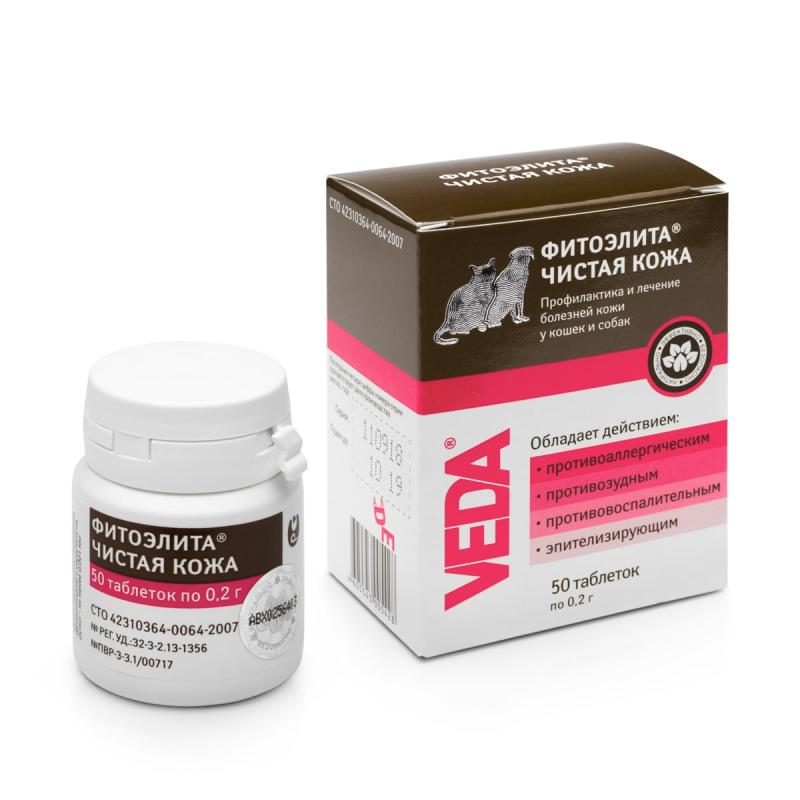 Фитоэлита Чистая кожа для собак и кошек 50 таб