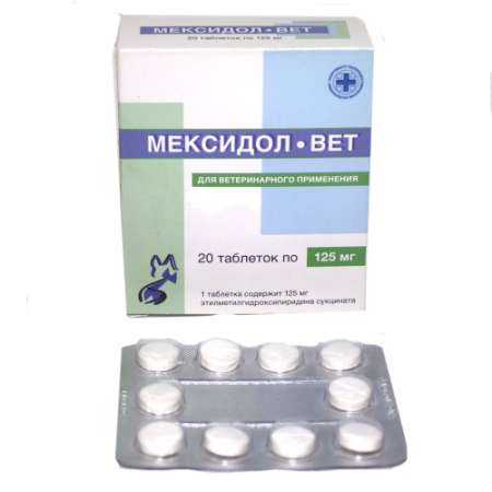 Мексидол-Вет обладает выраженными антиоксидантными, антигипоксическими и мембранопротекторными свойствами, повышает резистентность организма животного к воздействию различных повреждающих факторов к кислородозависимым патологическим состояниям (шок, гипоксия, ишемия, нарушения мозгового кровообращения). Мексидол-Вет улучшает метаболизм тканей мозга и их кровоснабжение, стабилизирует мембранные структуры клеток крови (эритроцитов и тромбоцитов), улучшает микроциркуляцию и реологические свойства крови, уменьшает агрегацию тромбоцитов. Обладая гиполипидемическим действием, препарат снижает содержание общего холестерина и липопротеидов низкой плотности. Механизм действия Мексидола-Вет заключается в способности вызывать усиление компенсаторной активации аэробного гликолиза и снижать степень угнетения окислительных процессов в цикле Кребса в условиях гипоксии с увеличением содержания АТФ и креатинфосфата, а также активизировать энергосинтезирующую функцию митохондрий. Мексидол-Вет ингибирует перекисное окисление липидов, повышает активность супероксиддисмутазы, модулирует активность ферментов и рецепторных комплексов мембраны, улучшая синаптическую передачу и транспорт медиаторов. При пероральном введении Мексидол-Вет быстро всасывается в желудочно-кишечном тракте и поступает в кровь, органы и ткани животного. Выводится из организма животного с мочой, в основном в глюкуроноконъюгированной форме. Мексидол-Вет таблетки по степени воздействия на организм теплокровных животных относятся к малоопасным веществам, не обладают местнораздражающими, кумулятивными, эмбриотоксическими и тератогенными свойствами.