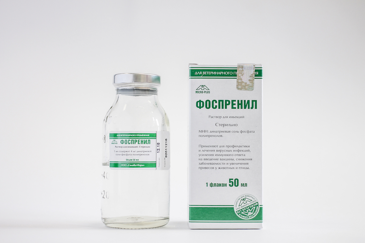 Фоспренил обладает широким спектром противовирусного действия как in vitro так и in vivo; повышает устойчивость организма к заболеваниям, вызванным парвовирусами, калицивирусами, герпесвирусами, парамиксовирусами, а также к ряду других вирусов животных.