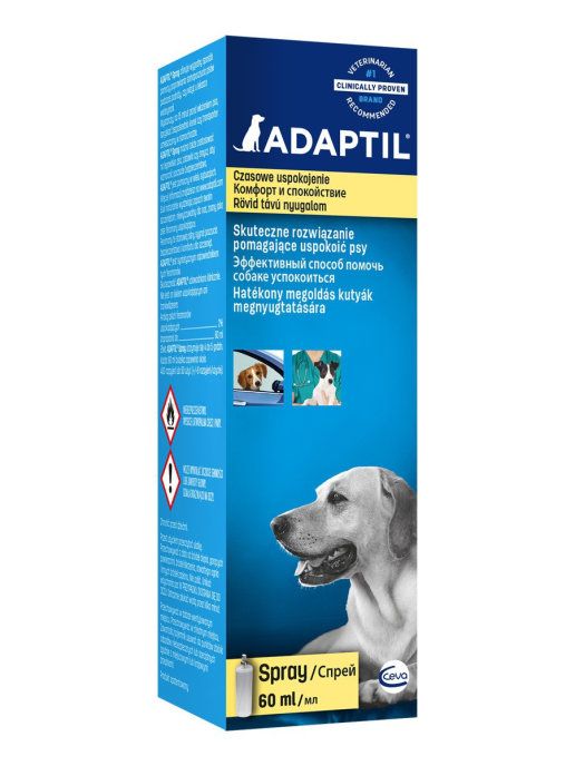 Адаптил рекомендован ветеринарными врачами в качестве успокаивающего средства для собак, благотворно влияющего на поведение питомца. Выделяя синтезированный феромон, являющийся полным аналогом феромона лактирующих сук, Адаптил имитирует действие этого феромона, успокаивая собаку и создавая у животного ощущение умиротворения и безопасности. Адаптил восстанавливает хорошее самочувствие и нормализует поведение собаки в стрессовых ситуациях. Рекомендуется при при раннем отлучении щенков от матери и при различных стрессовых для собаки ситуациях: при боязни шумов и взрывов (салюты, феерверки, гроза, выстрелы и т.п.), при расставании с хозяином (страх одиночества, временное расставание), при появлении нового члена семьи, во время и после визита к ветеринару, при посещении выставки, при транспортировке животного. Обработайте подстилку собаки или распылите в салоне авто за 15 минут до предполагаемого события, повторять обработку каждые 1,5-2 часа. Противопоказаний нет.