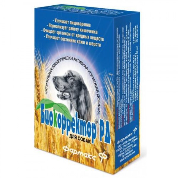 Биокорректор РД содержит натуральные вкусовые добавки и хорошо поедается животными. Препарат выпускается в форме таблеток и легко дозируется в зависимости от массы тела животного.