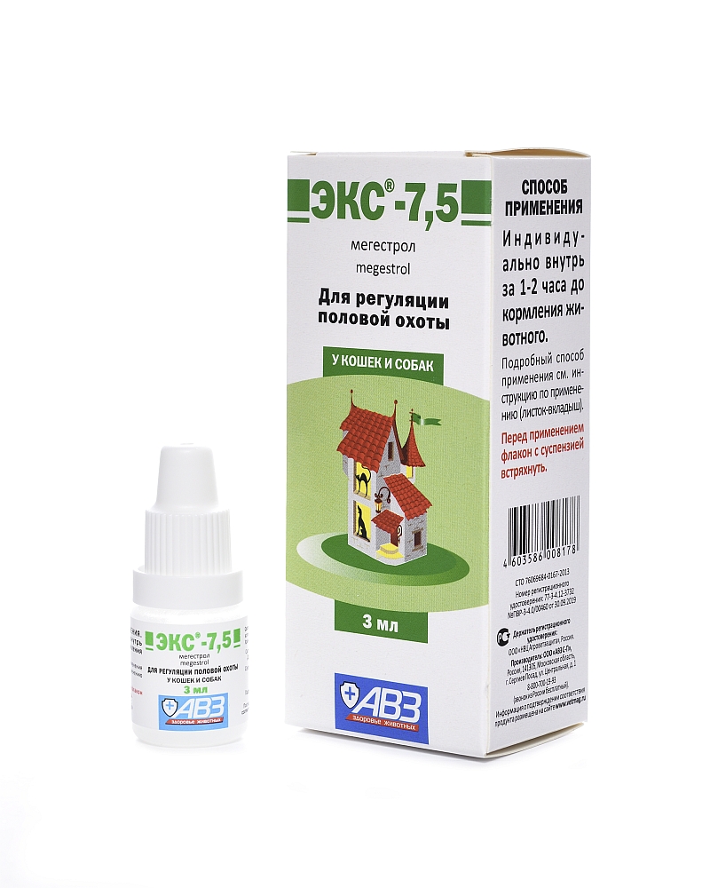 ЭКС применяют сукам и кошкам для прерывания и задержки течки, чтобы избежать случайного спаривания и предотвращения появления нежелательного потомства; кобелям и котам для снижения половой активности и коррекции поведенческих проблем в период половой охоты.