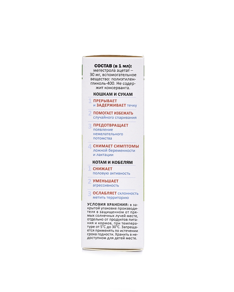 Препараты противопоказаны животным при заболеваниях половой системы (пиометра, метрит, эндометрит и т.д.), опухолях молочной железы, диабете, до полового созревания животных, беременным и кормящим самкам.