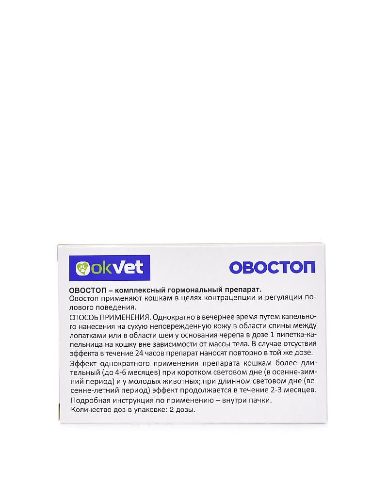 Овостоп применяют кошкам в целях контрацепции и регуляции полового поведения.