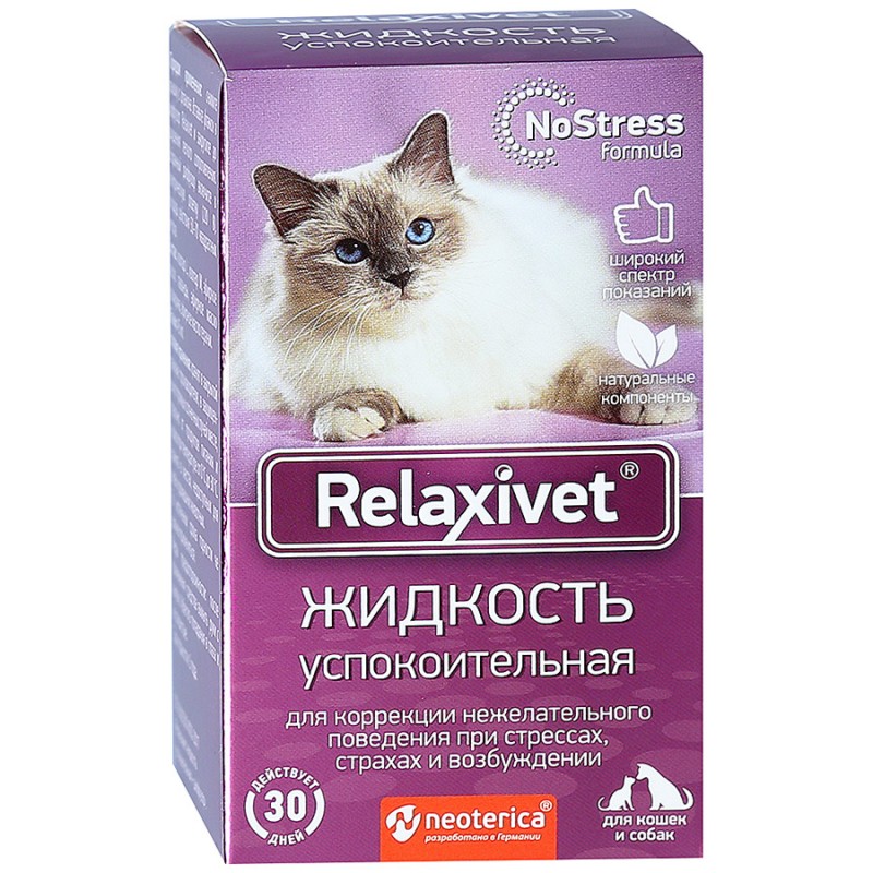 Успокоительная жидкость Relaxivet благотворно влияет на нервную систему, способствует снятию нервного напряжения и беспокойства у животных, особенно при адаптации к новым местам или разлуке с хозяином.