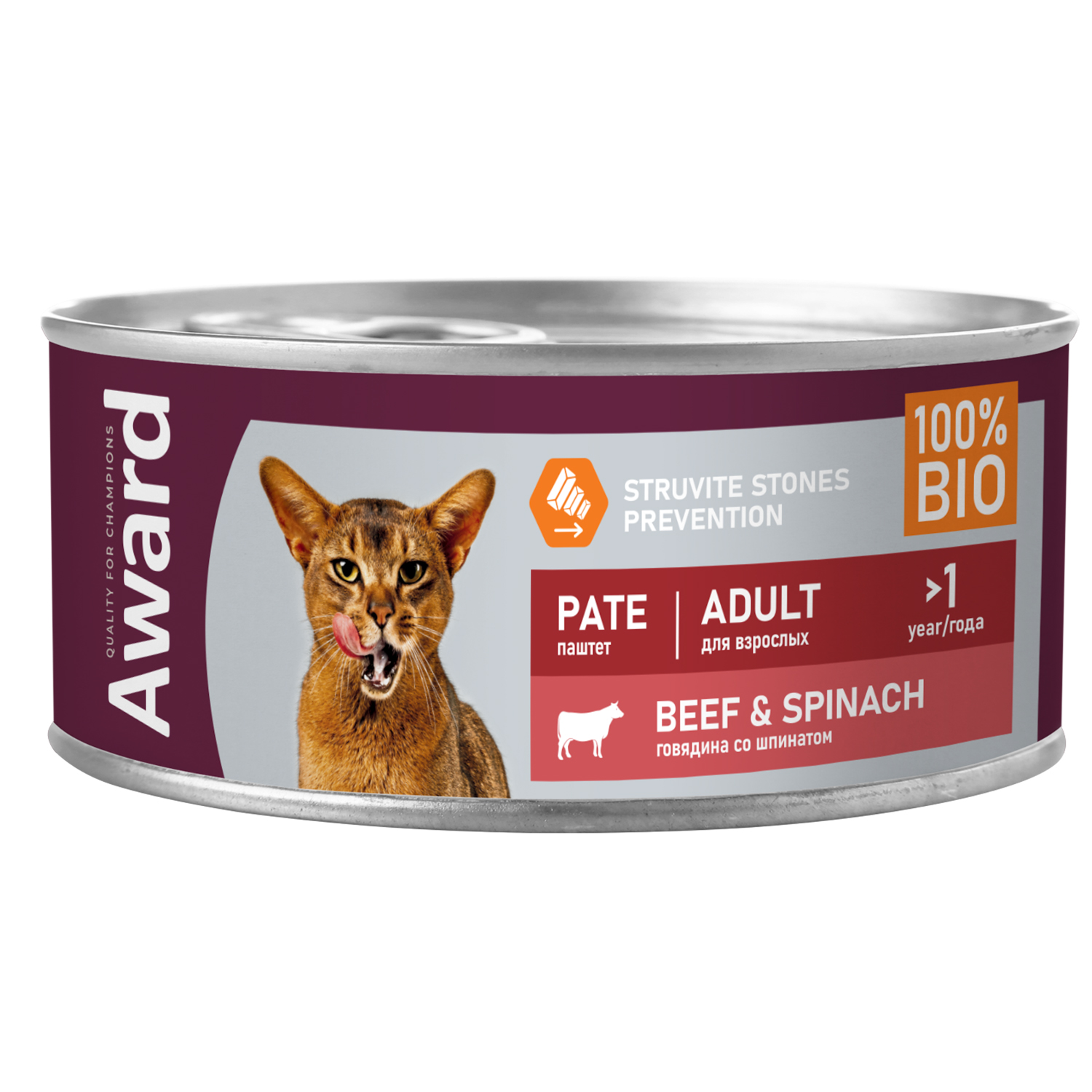 Award Cat консерва для кошек паштет из Говядины со шпинатом 100 г