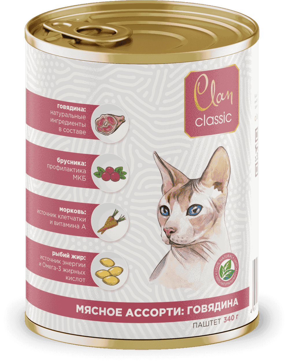 CLAN Classic консерва для кошек Мясное ассорти с Говядиной 340 г