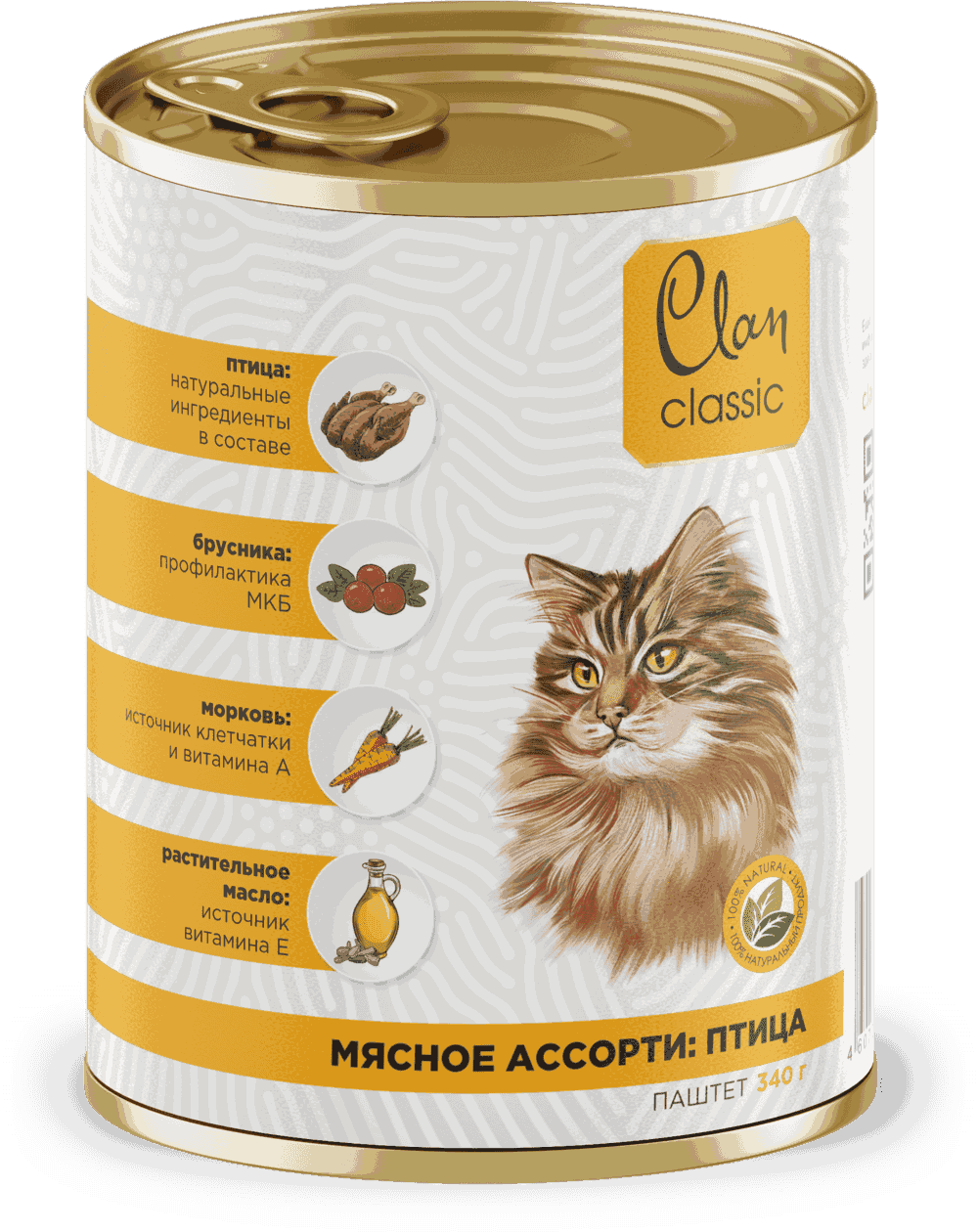 CLAN Classic консерва для кошек Мясное ассорти с Птицей 340 г