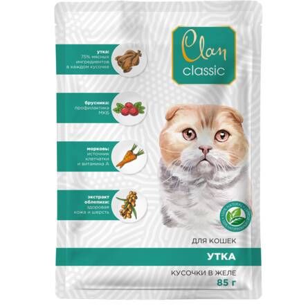 CLAN Classic пауч для кошек Утка с брусникой и морковью в соусе 85 г