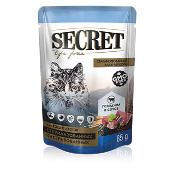 Secret life force Пауч для стерилизованных кошек Кусочки с Говядиной в соусе 85 г