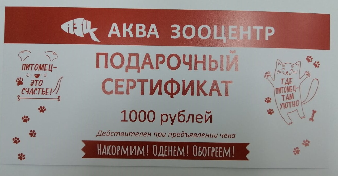 Сертификат номиналом 1000. Действителен при предъявлении вместе с чеком.